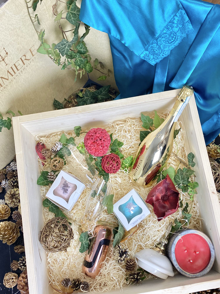 Cutie din lemn natur cu sigla Lumiere: 50 cm x 50 cm x 20 cm