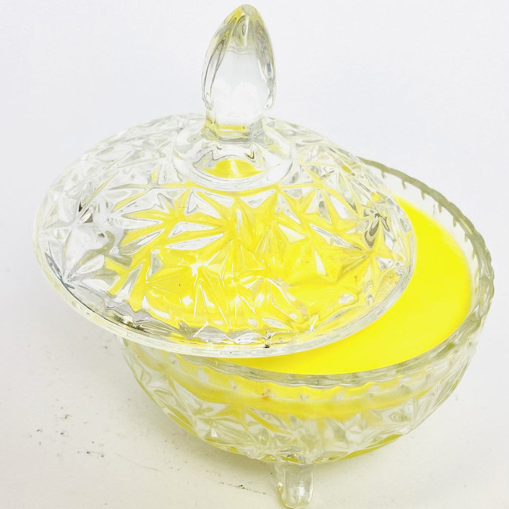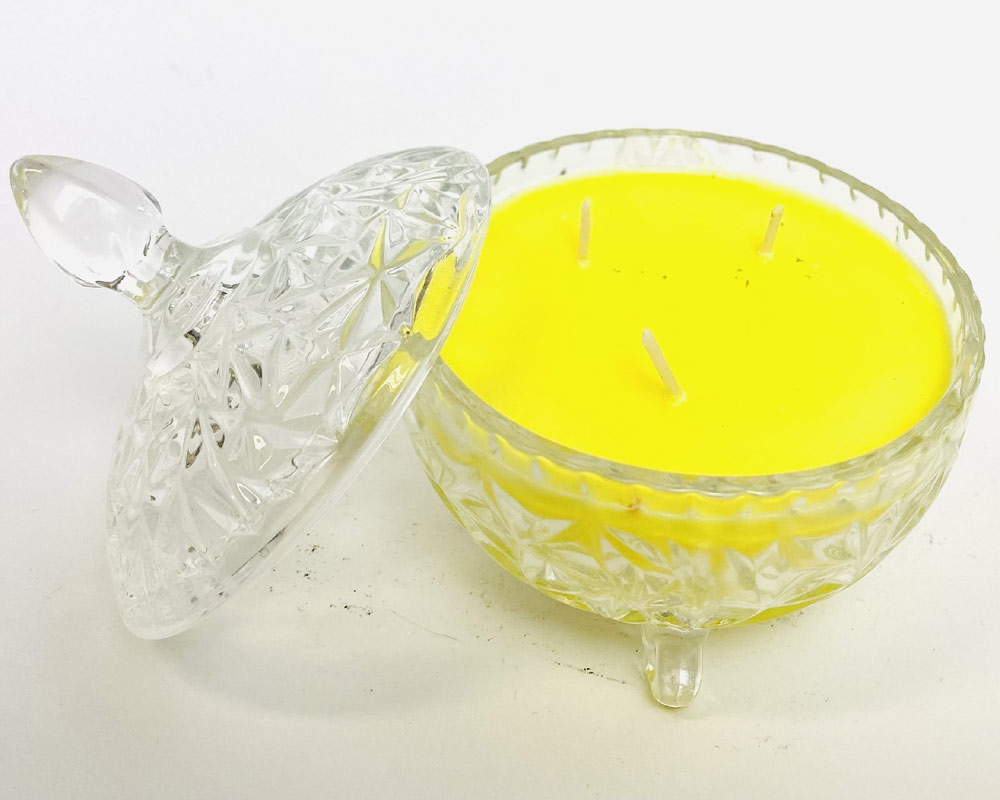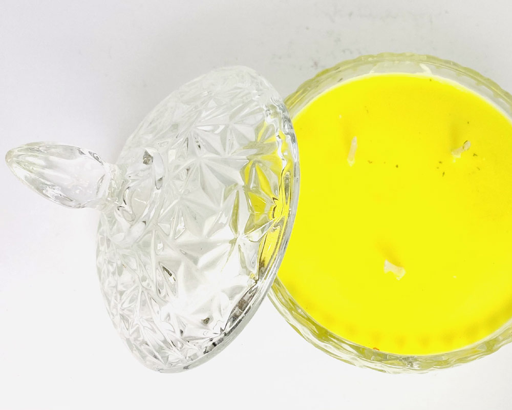 Lumanare parfumata din ceara de soia 100% turnata in bomboniera de sticla cu capac format rotund avand diverse arome. Lumanarile parfumate handmade din ceara naturala de soia sunt fabricate din soia 100%, fiind o alternativa regenerabila si biodegradabila la lumanarile din parafina.